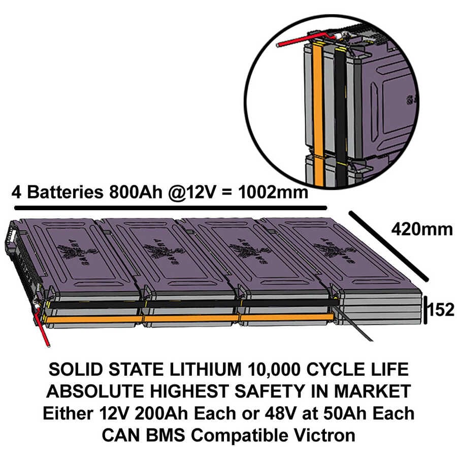 Solid State Lithium Battery 12V 200Ah 48V 50Ah Safest in Market 10,000 Cycles 2500W charge/Discharge