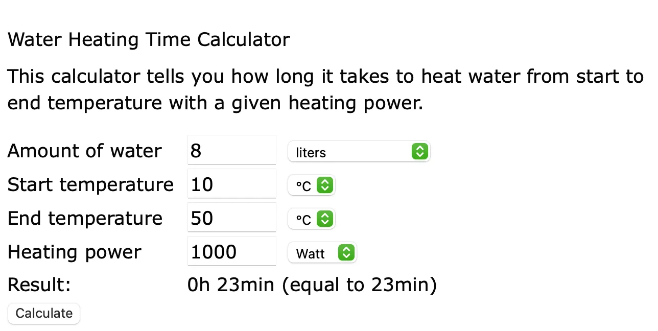 Heat up time 10C to 50C |