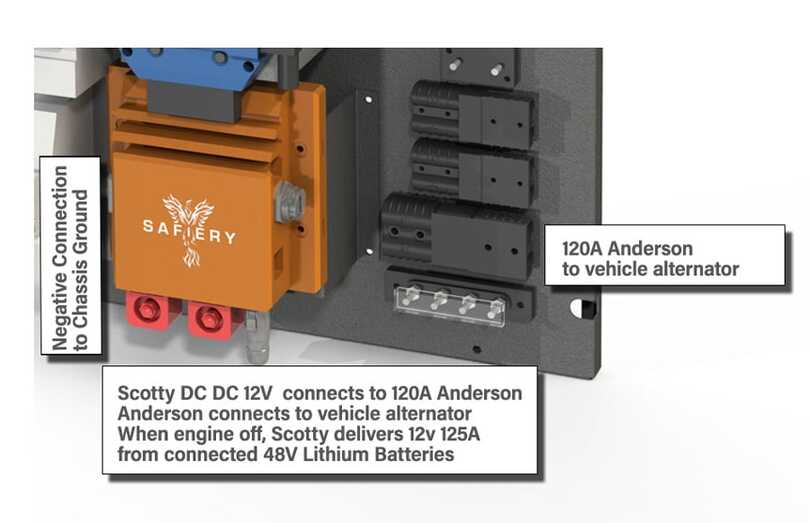 Scotty AI is a bi-directionaal DC DC. It will charge the 48V lithium at up to 1500W. It has AI for auto-tuning to the vehicles alternator. All done on smartphone.