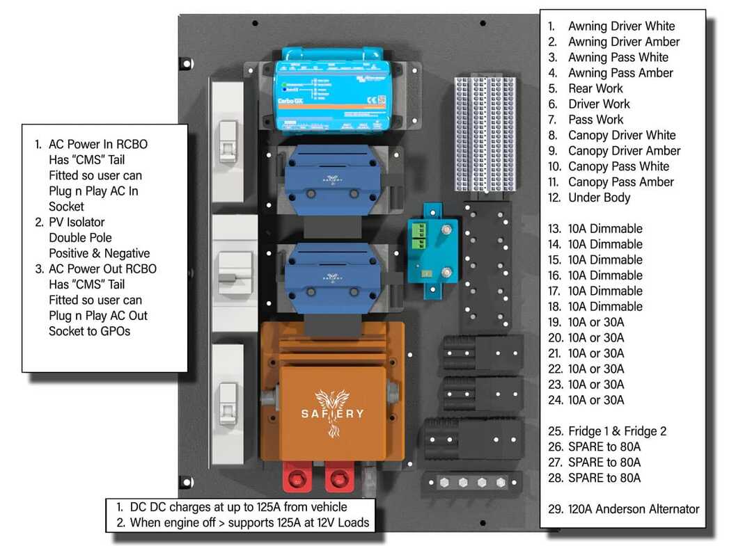 Safiery takes list of wiring outputs from van/canopy builder.