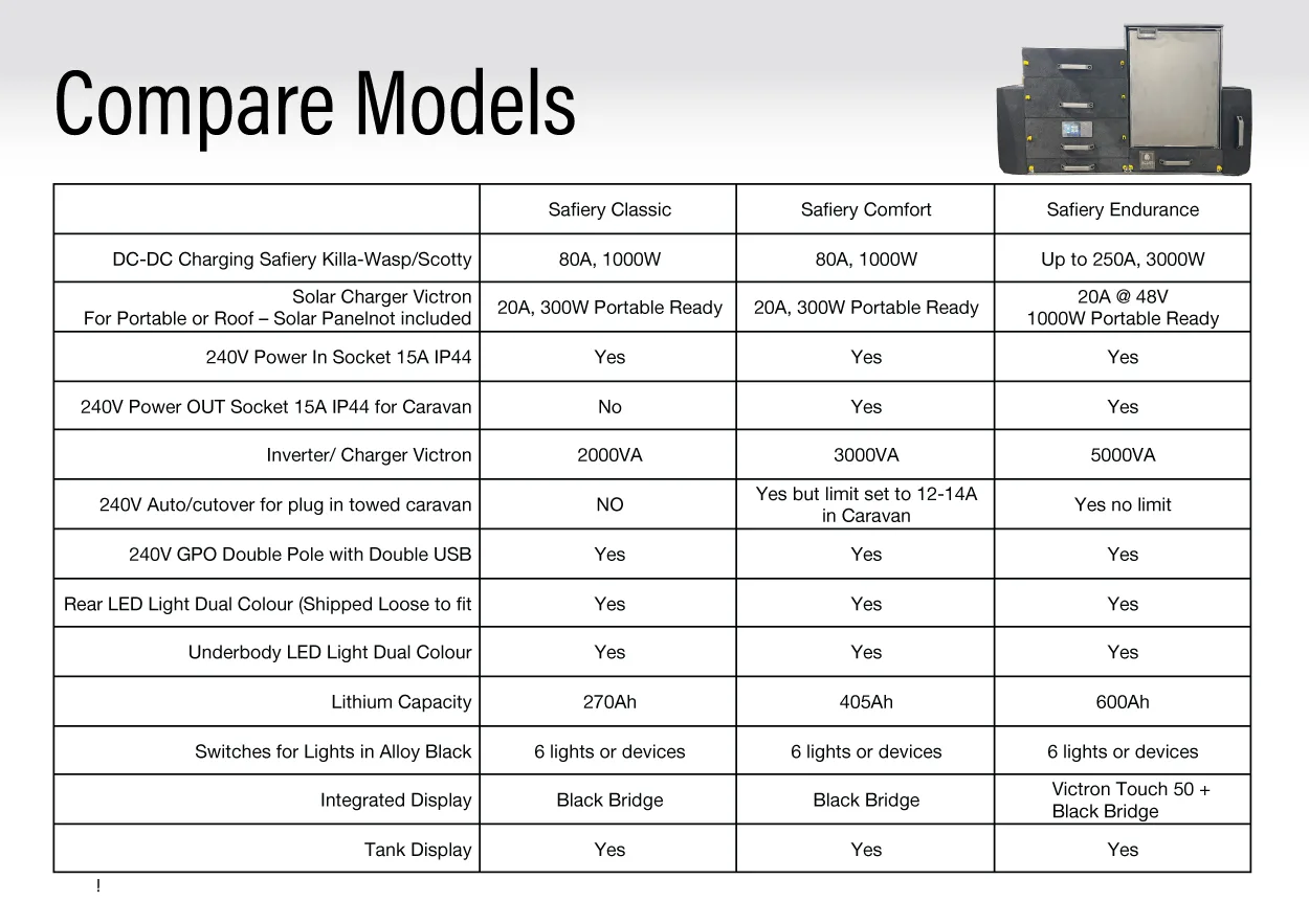 Note for those comparing Redarc’s award winning Redvision Manager30 Kit (Trademark Redarc), the Safiery Black Bridge pack outstrips this kit with: