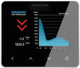 PICO’s display unit is made of a sleek anodized aluminum casing and a thick Gorilla® Glass with Anti-Reflective coating protecting the optically bonded high-contrast 3.5 inch IPS LCD display. It’s water and dust proof and can be mounted both indoors and outdoors. The screen brightness is automatically adjusted with a light sensor. The device is operated by four water tolerant CapSense® touch buttons. The (optional) barograph gives precise air-pressure readings, trends, and history.
