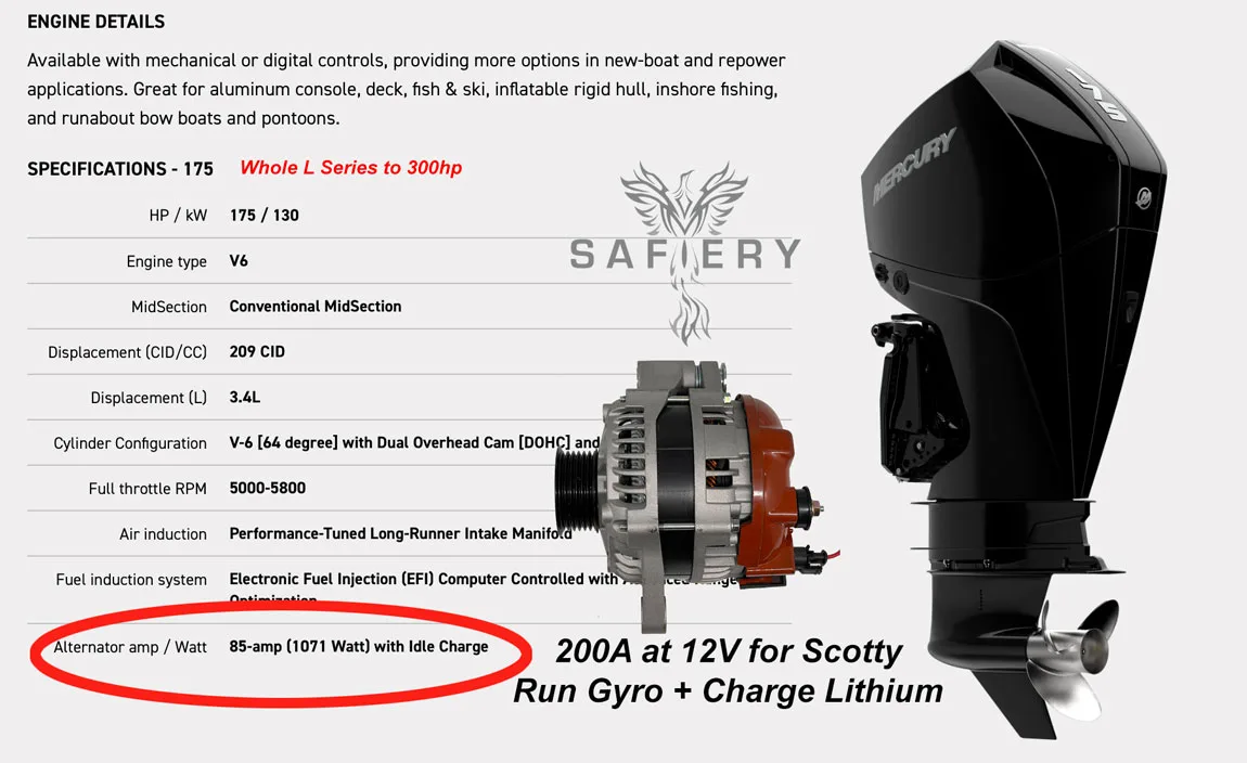 SAFIERY High Performance 200A Alternator suit Mercury Verado L6 Series to 275Hp - POA, contact us to discuss 07 21022553